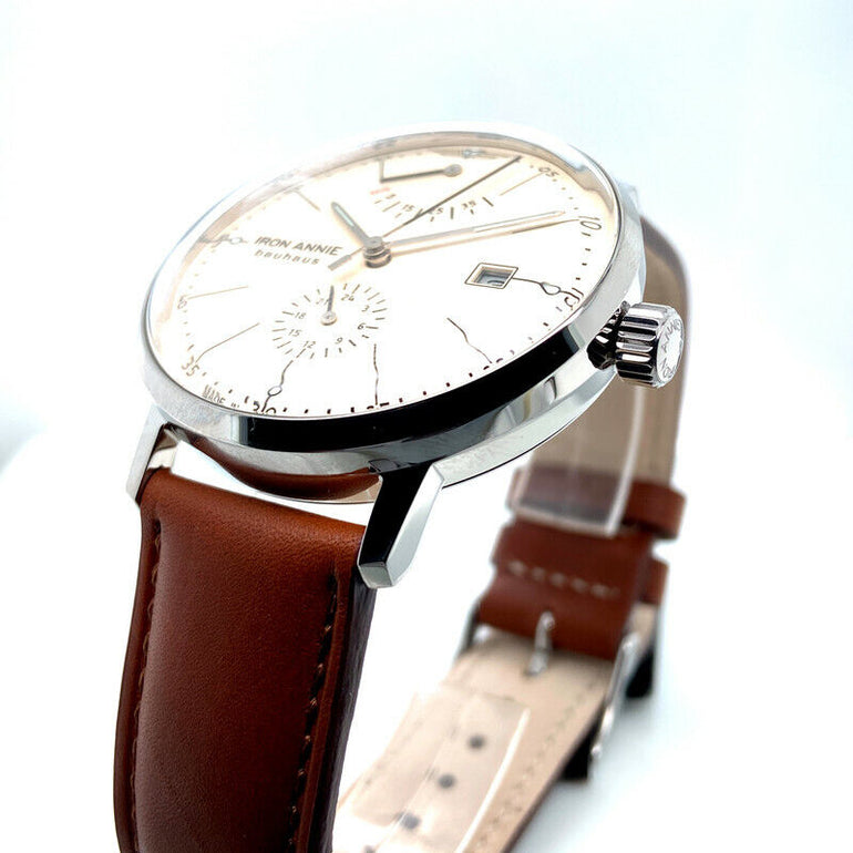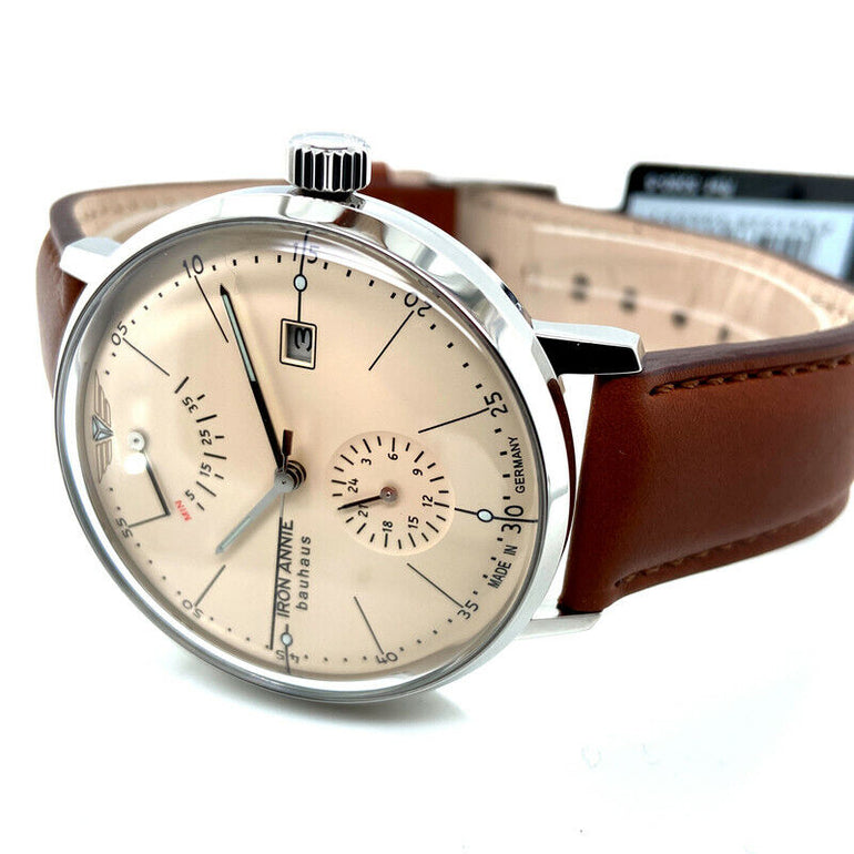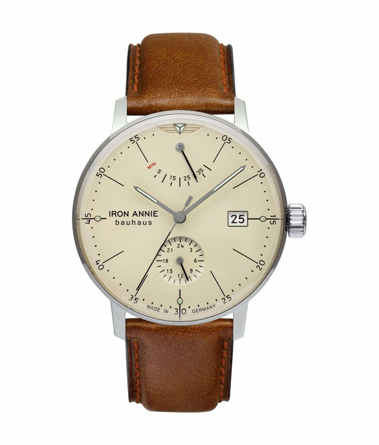 - Beige dial with black numbers/indices, luminous hands, luminous dots