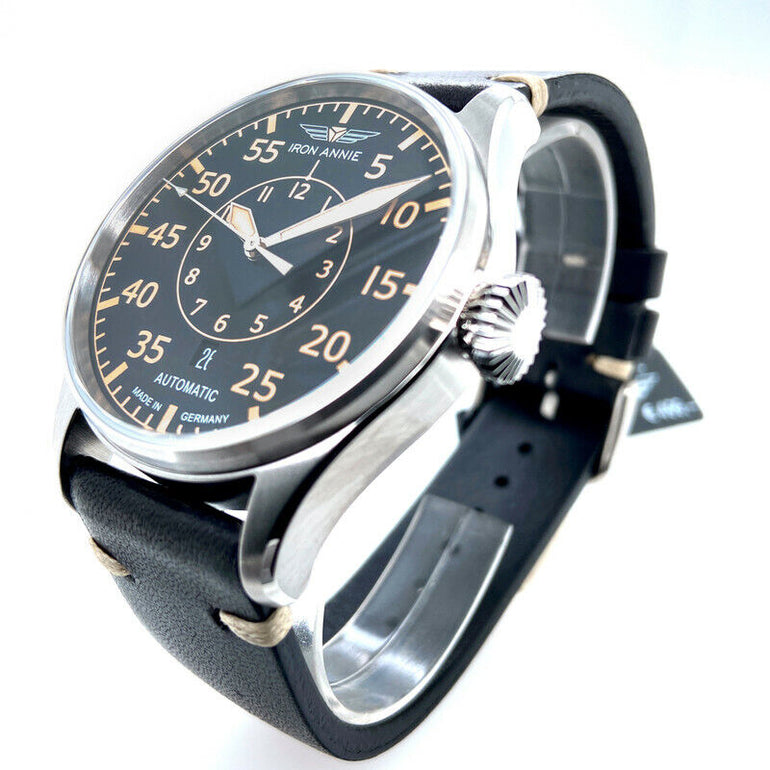 Black dial with Old radium, in the dark blue shining luminous digits / indices SuperLuminova