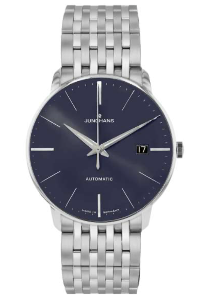 At work. At sports. At leisure. Whenever and wherever you may be, the Meister S Automatic in midnight blue always retains its uncompromising functionality. And uncompromising aplomb. The ergonomic bracelet has raised Junghans lettering in the synthetic rubber to allow the skin to breathe.