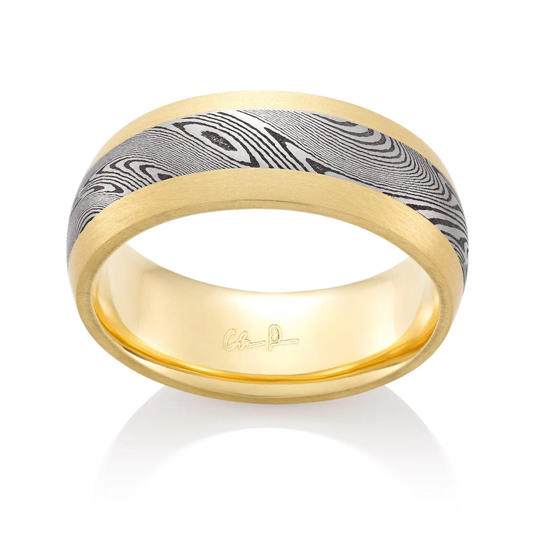 Supernova Precious Damascus Inlay in 18K Yellow Gold Wide Channel