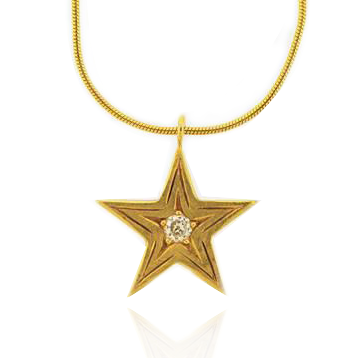 Gold Star Pendant with Round Brilliant Cut Diamond on Cable Chain