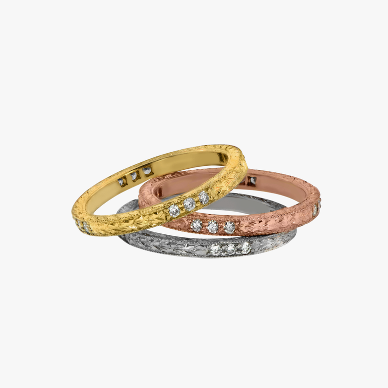 Hand-Engraved Wheat Band with Diamond Accents